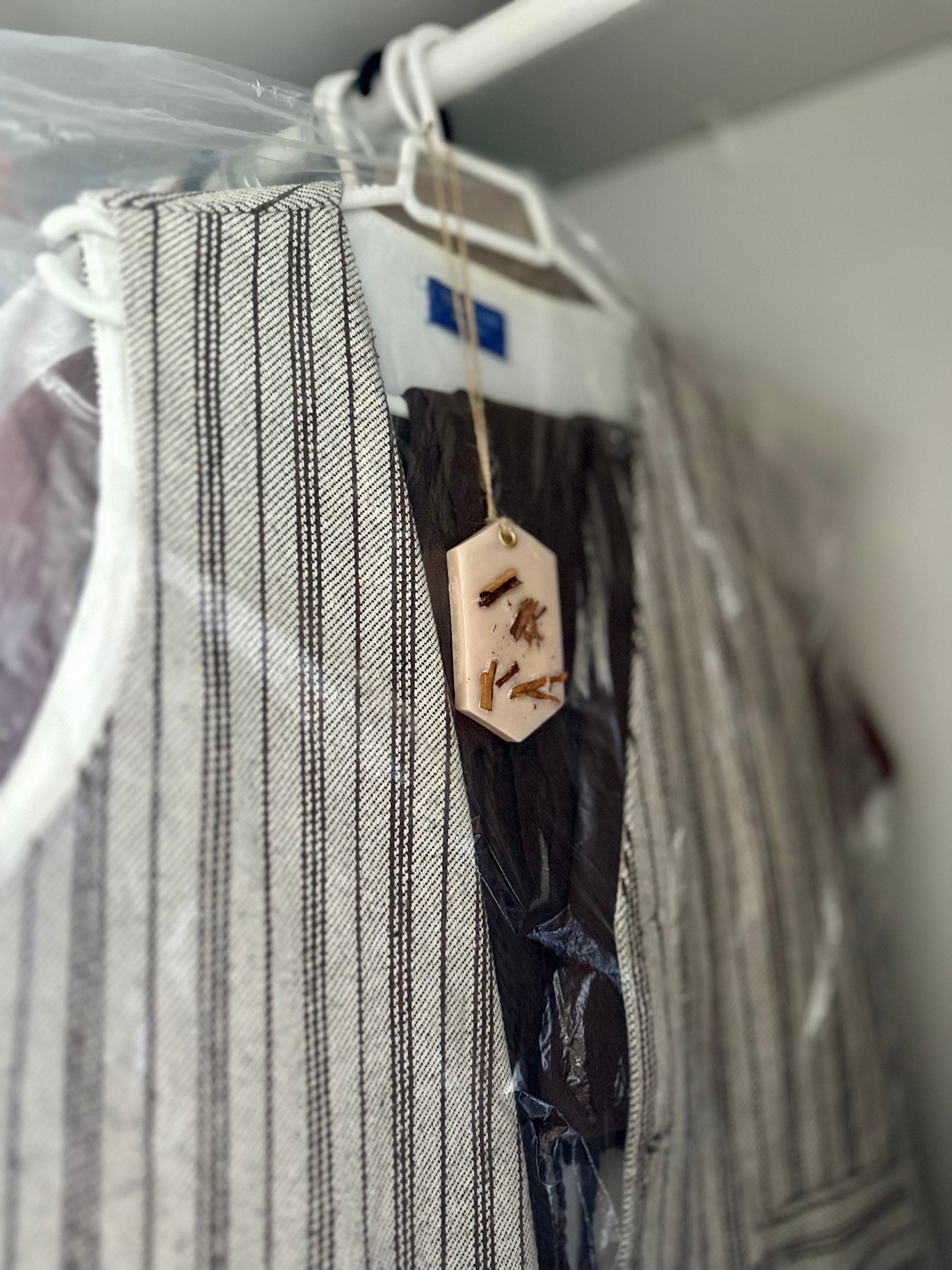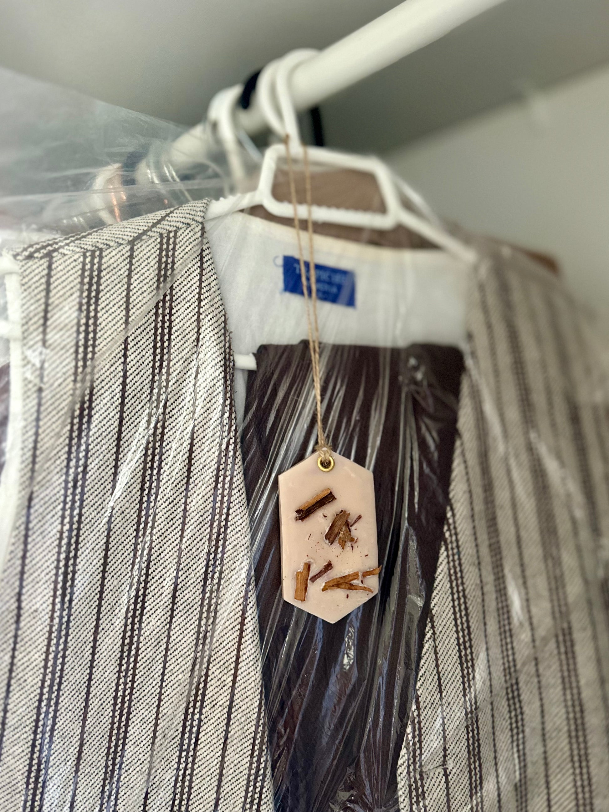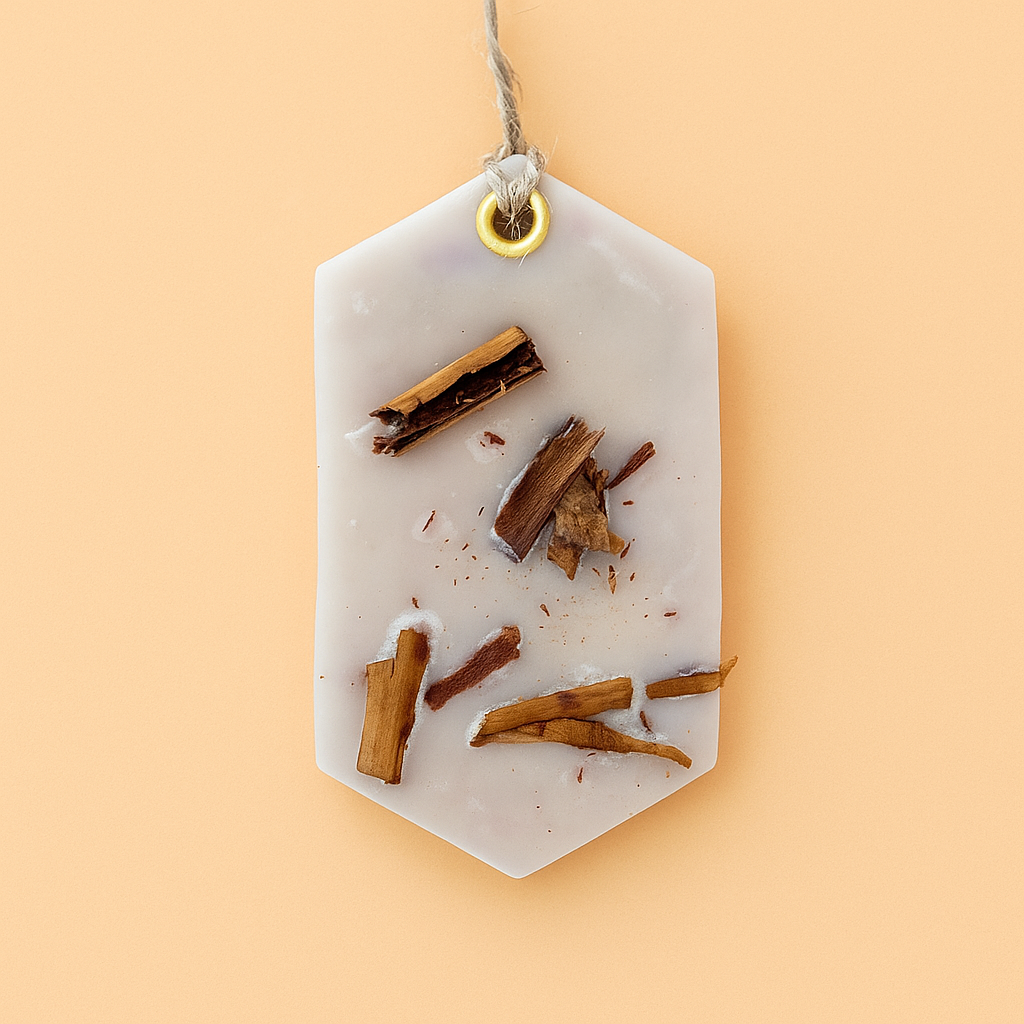 Llena tu armario de calidez y confort con este delicado ambientador artesanal elaborado con cera de soja 100% natural y perfumado con un suave y envolvente aroma a canela. Diseñado para colgar fácilmente entre la ropa, este pequeño tesoro no solo perfuma con un toque especiado y hogareño, sino que también aporta un aire elegante y natural a tu espacio.
